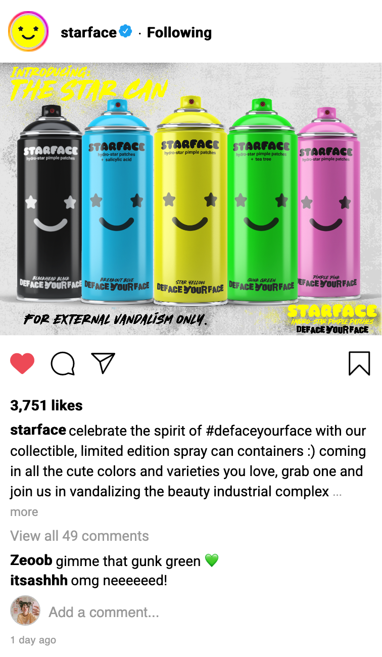 We grow up learning that our faces should be flawless. We’re taught to cover blemishes, conceal imperfections, and never draw attention to what’s “wrong.” But there’s a part of us that wants to push back. A defiant urge to rebel against those rules. Embrace that urge. Fight back. Reclaim the thing you were told to be ashamed of. Reject normal and find thrills in your flaws. Breakout with Starface Hydro-Star Pimple Patches, decide the new beauty standards for yourself, and Deface Your Face.